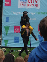 As Niamh was off the weekend, she went into Merrion Square on the Sunday, for the +Dublin Spectacular, as the rain on the Saturday was horrendous. I ended up meeting her there after work, as she was texting me, the fun she was having there. She wanted in particular to show me 2 comedic acts that she really enjoyed. Trampoline Mission 3 are a Belgian trio dressed as super heroes, who use acrobatics, juggling and comedy to entertain the crowd. My highlight was Mario Queen of the Circus who uses his love of Queen and Freddie Mercury and build a show around it, using juggling, duelling and unicycling which for sure entertained me and got the whole audience laughing with his sense of fun and skill. Although the Spectacular this year wasn't as good as previous ones, these 2 acts helped to save it for us.